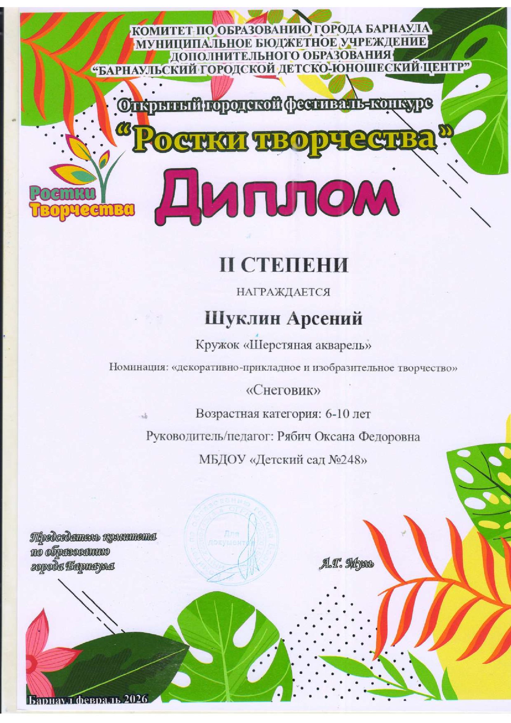 Муниципальное бюджетное дошкольное образовательное учреждение «Детский сад №248»